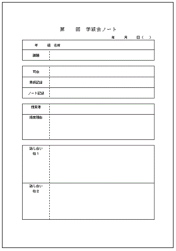 ワードで作成した「学級会ノート」のテンプレートを未登録・無料でダウンロードできます。
